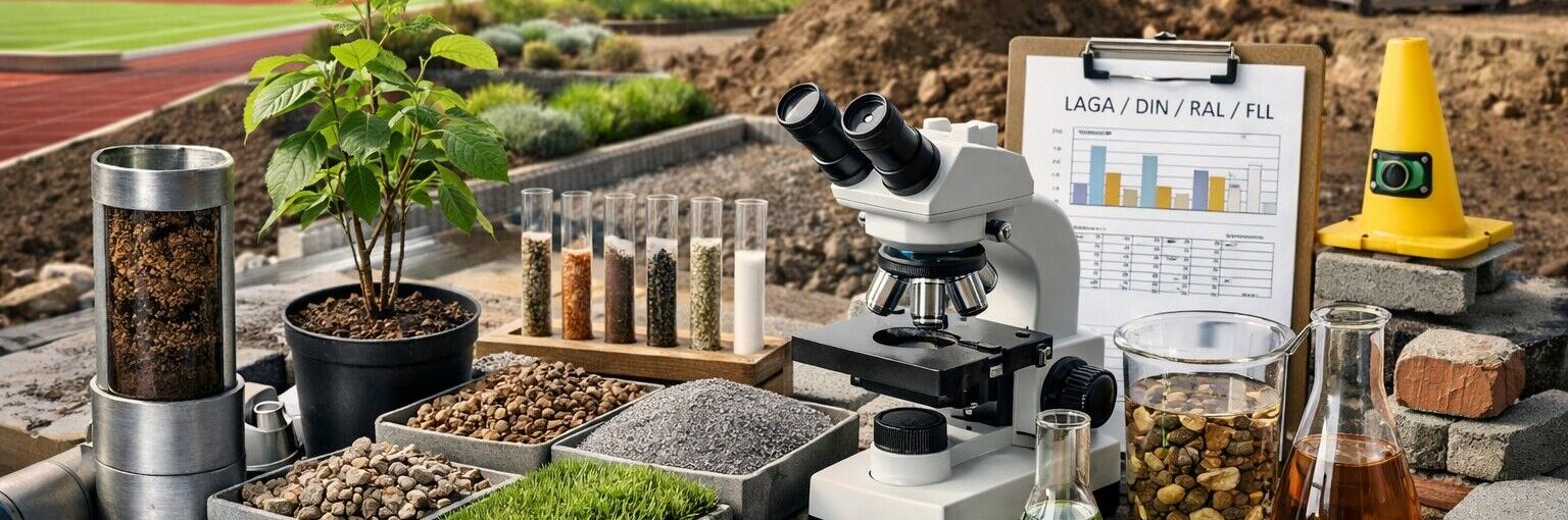 Als akkreditiertes Prüflabor bieten wir umfassende Leistungen rund um Boden- und Baustoffuntersuchungen – von der Probennahme über Analyse bis zur praxisnahen Bewertung. Unser Spektrum umfasst: